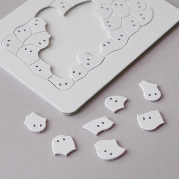 37片花150分鐘!?<榮獲最優秀獎!> 第十屆日本感性工學會「可愛感性設計獎」小鬼拼圖是一系列難度很高的拼圖,形狀是沒有正反面的可愛小鬼。自2016年以來,我們已經發表了大約10款不同的小鬼拼圖。要用紙來實現「沒有正反面」的狀態其實非常困難,因此我們特別開發了專用的製作方法。<小鬼拼圖 SHIRO>首次推出的紙質小鬼拼圖!雖然是紙,但材質和桌遊棋子一樣堅固,還有滑順的觸感。SHIRO呈現出像柔軟布料般的白色,看起來就像披著床單的小鬼——可愛極了!<超高難度>只有37片,但在試作品挑戰中,平均花了2個半小時!難度真的「鬼」級!<難度祕密1>設計師巧妙設計,使許多小鬼的頭部與身體形狀完全一樣!<難度祕密2>採用了全新的製作方法,讓拼圖完全沒有正反之分。小鬼拼圖團隊將點子交給熊本的池田紙器工業,雖然對方直呼「太難了!」,但最終成功完成。透過從正反兩面同時切割,讓正反完全無法區分!產品資訊規格 - 厚度4mm(拼圖片2mm) - 霧面乙烯材質 - 明信片尺寸:105mm x 148mm - 附解答插圖