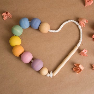 這是一款根據著名的蒙特梭利教育體系所開發的開放式兒童教育玩具。言語發展的主要因素是運動規劃-建立行動邏輯的能力。言語是最複雜的思考過程之一,為了刺激它,需要教育玩具,讓孩子思考需要採取什麼行動才能得到結果。這些益智玩具之一是兒童木製繫帶玩具珠。適合新生兒的最佳蒙特梭利學習玩具,顏色柔和,是神經心理學課程、診斷和兒童練習的良好模擬器玩具。遊戲結束後,它將成為任何兒童房間的蒙特梭利架子或角落上的美妙裝飾元素。手工製作的最佳木製天然經典兒童教育學習玩具將成為兒童航空飛機、汽車公路旅行和海灘的最佳旅行玩具。幼兒期技能發展:這款遊戲採用觸感宜人、溫暖的木珠,適合嬰兒早期發展,旨在發展幼兒的粗大運動技能和精細運動技能,以及形狀和顏色的識別能力。透過連續的行動進行思考。感官木製教育拼圖對孩子來說也有助於運動協調性的發展,並且與天然木材的接觸會增加感官體驗。生態友善的天然材料:手工製作的兒童開放式教育玩具的元素是由實木手工製作的,所有表面都經過仔細打磨並塗有天然彩色蠟,這並沒有隱藏天然木材的獨特結構。彩蠟是兒童木製玩具最好的環保塗料之一,使其成為100%環保的玩具。天然木材的表面觸感非常舒適,眾所周知,木製玩具具有自然能量和溫暖。男孩和女孩的最佳玩具禮物:教父母和教母為男孩和女孩、兒子和女兒、洗禮、第一個生日定制的個性化嬰兒禮物是讓孩子生命中的任何節日或特殊時刻變得特別的完美方式!這樣的禮物不僅會讓孩子高興,也能記得他生命中的特殊時刻。個人化的木製繫帶玩具讓孩子生活中的任何假期都變得特別!兒童木製益智玩具尺寸:手工製作的兒童木製益智彩虹玩具是考慮到小手的大小而製作的,以便孩子們方便地拿球和玩耍。木製蒙特梭利遊戲套裝包括: 8 個直徑 1.2 英吋/30 毫米的木球; 1 根長度為 3.9 英吋/100 毫米的針。直徑為 0.35 英吋/9 毫米。棉繩末端附有特殊的球限制器,可防止珠子從鞋帶上掉落。手工木製玩具:手工玩具的製作著重於細節與愛。木材的紋理、顏色和自然圖案賦予木製玩具特殊的魅力。每個幼兒木製益智玩具都是獨一無二的。木製玩具具有其他材料難以複製的獨特美感。