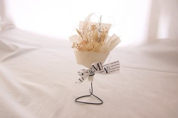 花束大小:15 x 10 cm盒子大小:18 x 13 cm購買須知– 乾燥花依環境不同平均可放置1~2年以上不會嚴重退色。– 小型的配花,會依照進貨情況在主花、主色調不變的情況下進行微調。– 下單後約1~2天出貨,節慶訂單量多的情況下,可能會需要3日,敬請提早下單。– 商品下定後開始製作,如訂購量較多(20件以上),則需4~5日的工作天,送達需要5至6日。– 花束商品較為脆弱,售出後恕不接受退換貨。– 送出訂單後2至3日送達,如需指定時間限請於備註填寫日期,最快送達時間為隔兩日(每日17點結單,17點後以隔日訂單計算)。保存方式– 放置通風良好的室內。– 勿長時間接受日照(容易褪色)。– 避免放在潮濕的環境(容易發霉)。– 若有灰塵請勿直接擦拭花材,可用吹風機以低溫弱風清潔,切勿用清水清裡或濕布擦拭。備註說明– 商品到府後一律不接受退貨,如商品運送過程中有損壞可於七天內寄回。– 卡片內容,請以聊聊告知想要的卡片編號。01.The best thing to hold onto in life is each other.生命中最要緊的事即是彼此。02.Wherever you go whatever you do i will be right here waiting for you.無論你身在何處無論你為何忙碌我都會在此守候。03.I’ll think of you every step of the way.我會想你,在漫漫長路的每一步。04.No words are necessary between two loving hearts.兩顆相愛的心之間不需要言語。05.I’ll take one minute to say I love yo,one hour to explain it, a whole life to prove it.我將用一分鐘說 我愛你,一小時去解釋,用一生去證明。06.If I had a single flower for every time i think about you, i could walk forever in my garden.假如每次想起你,我都會得到一朵鮮花那麽,我將永遠在花叢中徜徉。