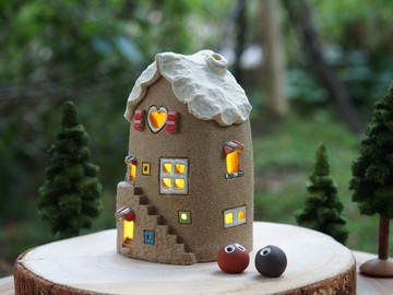 【燈屋 Lighted House】陶手作-可愛的家/Ceramic Lighted House(不含木頭配件跟手工樹,貓頭鷹)純手工製作, 純天然陶土色澤, 質樸可愛....尺寸: 約 長 11cm x 寬8 cm x 高 12 cm (因為手工和燒窯收縮, 尺寸每個略有誤差)作品會附一條活動式的安規電線+燈泡, 從後方裝入.不裝燈時, 亦可由後方放入燭臺 或是 薰香..多用途使用, 不管點燈 或是 純裝飾 都好看.House included a movable power code + bulb, insert from backside,also can be candle holder or incense stand, multi-function.小房子裝可愛為個人工作室,未達開立發票標準,且無營利事業登記證明,無法開立發票,若有需要,小房子裝可愛可以提供簡易的收據,造成不便,敬請見諒.產地/製造方式Made in Taiwan/Handmade Pottery ,手作陶藝,高溫燒製