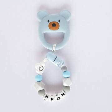 noah 白雲 珊瑚藍小熊固齒器 / 客製化奶嘴鏈