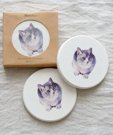 Jubilee 矽藻土杯墊 2片1組 貓咪 白色圓形款