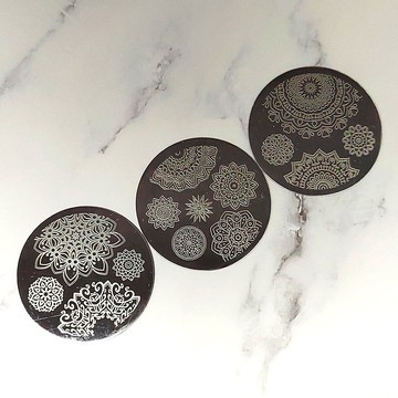 https://youtube.com/watch?v=eBTfb8lOIiI&t=7s**【BEnails轉印美甲-轉印鋼板(小圓版)─SC011印度謎-夜空】美甲印花轉印鋼板 指甲彩繪道具**https://live.staticflickr.com/65535/52056912900_611f458dfd_o.jpg💅✏️設計概念**● 生命和青春,財富和榮耀,都會隨光陰流逝...只有這一顆淚珠,泰姬瑪哈陵, 在歲月長河的流淌裏,光彩奪目,永遠,永遠。_by Rabindranath Tagore **⚡Tips:這款很可用於多變進階的反法式造型,且圖案線條鮮明,搭配亮麗的顏色的指彩很適合。● 小圓版轉印鋼板三片一組尺寸:直徑5.5CM 圓形材質:不銹鋼(亮銀色)重量: 45 g❗️❗️鋼板上會有一些細小刮痕,是正常的,不是瑕疵,不會影響圖案印製,購買前請注意^_^❗️❗️https://live.staticflickr.com/65535/52056479908_1c94f49060_z.jpghttps://www.youtube.com/watch?v=4-R63F8P2o0**😊DIY漂亮的美甲,你只要這3種東西-****1.BEnails轉印章****2.BEnails轉印鋼板****3.一般指甲油(市面販售的即可)**__※轉印鋼板&轉印章,可重複使用,任意搭配變化出不同美甲創作。__---------------------------------------------------------------✅🆗注意:轉印要用一般指甲油。❌🆖水性、(類)光療-可剝式的指甲油,質地都不適合轉印。㊙💖**如果要搭配光療,只有轉印那層用一般指甲油,底層和上層用光療膠。**好處是轉印的圖案很容易可以用去光水清除,就不怕轉印失敗或想改圖了。這用法還蠻推薦給已經有光療美甲道具的水水。**▶產品都會附使用說明&示範影片QR Code**,更多美甲示範教學可到Youtube、FB、IG,搜尋BEnails----------------------------------------------------------------------------------https://live.staticflickr.com/65535/52056444306_ee117b795a_o.jpg**【BEnails轉印美甲專門店】是專注於❤️轉印美甲❤️的台灣品牌** 每件商品都是自己設計或反覆測試後挑選,最希望的是您能開心地創作自己的美甲作品。-▶BEnails轉印章-各種轉印章,合適的軟硬度顯性,超好轉印🎉。透明轉印章、🧁杯子蛋糕轉印章、印章筆刷...等 (__使用過難用印章的水水一致好評!__)👍️👍️👍️▶BEnails轉印鋼板-我們依各式主題,用心設計適合轉印的圖案,呈現在指甲上時,如同圖畫般的美麗。\t (__已全面升級防割背板,邊緣安全不割手。__)💯😊🌟另有轉印鋼板收納本、美甲防溢貼...等。-🌺我們很重視您的使用感受,所以有問題或想要建議的產品、花樣...等請跟我們聯繫,我們一定會竭盡所能處理。#BEnails #轉印鋼板 #指彩板 #印花板 #美甲 #轉印美甲 #印花美甲 #美甲DIY #美甲轉印章 #BEnails轉印美甲 #指甲彩繪 #指彩 #美甲道具 #NailArt #轉印章