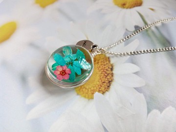 項鏈墜飾直徑 : 2.5 X 2.5 cm銀色項鍊長度 : 50 cm 製作材料 : 玻璃、乾燥植物等**商品附贈禮盒包裝**