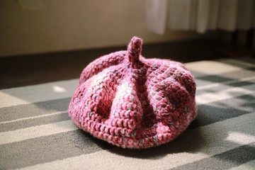 文青時尚南瓜帽-Q捲捲條亮紫#禮物#秋冬#薄毛料#畫家帽#貝蕾帽