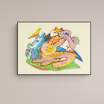 藝術家:Febbi https://image-cdn-flare.qdm.cloud/q665027dd6a3a4/image/data/2024/01/05/8ee88aa455ab02105398cabece311abb.jpg【藝術家 Febbi 全部海報】https://www.pinkoi.com/store/propc?q=Lingoooo喜歡旅行的插畫藝術家 Lingoooo,擅長以在旅程中的所見經歷即興手繪。使用粉蠟筆為創作工具,勾勒出一幅幅繽紛細膩的作品。也常以原子筆描繪看似隨手塗鴉、卻充滿豐富細節的畫作。 源源不絕的創作靈感,來自對家人的愛與對生活的體悟。可以從她充滿個人風格的作品中,感受到豐沛的能量。 Lingoooo 近年來活躍於各插畫展,也有多場個展舉辦的經驗。同時為飾品品牌「Febbi」的主理人。 2015年鄭郁玲個展-摩登波麗展出2016 年鄭郁玲個展 -造山計劃-三條線藝術空間2017-文博會2017-華山自由藝術日2017-圓山 混種藝術展2018-華山自由藝術日2018-花蓮承億文旅-藝術家進駐計劃2019-建案 潤泰集團 松蔦青語繪畫藝術家2020 -happyiness Day展覽-青色煙火2022 -松菸行旅藝博會參展2022-華山國際插畫展2022-W hotel 藝博會2023- Whatz 喜來登 藝博會作品名稱:Lingoooo 004動物派對作品尺寸:50 x 70 cmhttps://image-cdn-flare.qdm.cloud/q665027dd6a3a4/image/data/2024/01/08/b5b43be50591c17b5bfad27dd94f3d71.jpg實拍作品 x 原木色鋁框https://image-cdn-flare.qdm.cloud/q665027dd6a3a4/image/data/2024/05/14/eaa05dbd699746b4312cb6bac33e918a.jpg**基本滿版裱褙 說明:共七款鋁框可選擇***基本裱褙 / 裸裱. 就是沒有加上壓克力保護的意思。https://image-cdn-flare.qdm.cloud/q665027dd6a3a4/image/data/2023/07/11/4b853563c2267abe4f46e392cf820e6b.jpghttps://image-cdn-flare.qdm.cloud/q665027dd6a3a4/image/data/2023/11/24/2cc6b1cb3c7d678323915c04e8c9505b.jpg鋁框背面細節:https://image-cdn-flare.qdm.cloud/q665027dd6a3a4/image/data/2022/04/12/c6d34fbc231337ab8da27935ab4f31db.jpg