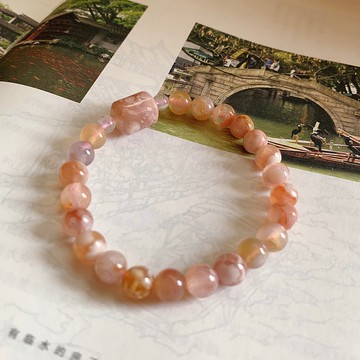 櫻花作意開。天然櫻花瑪瑙手鏈 氣質 文藝