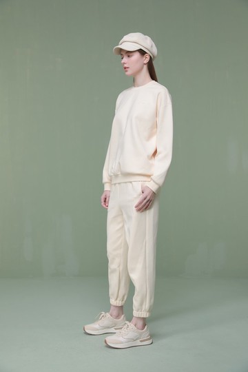 柔和香蕉奶油.溫暖圓領下.繡出雅緻.長袖衛衣飄逸隨行