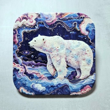 星雲北極熊- 晶雕吸水陶瓷杯墊