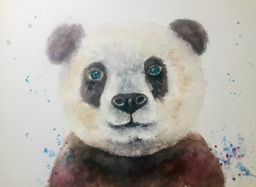 熊貓的溫柔凝視 – 原創水彩肖像畫