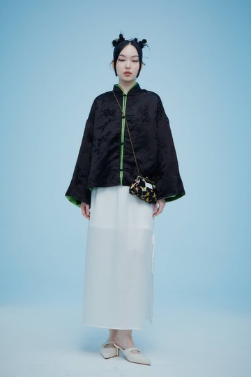 煩惱心黑色低調梅花真絲外套100% Silk 含真絲內裡