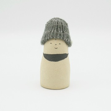 手工陶瓷人偶地藏頭戴針織帽 S 號