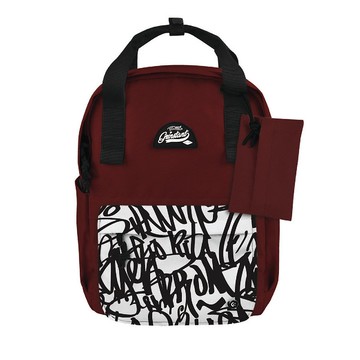 Grinstant混搭可拆組式13吋後背包 - 冒險系列 (深紅色配塗鴉)