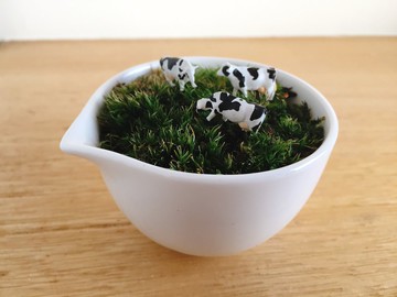 純自然 草原上的動物 乳牛 白瓷器 盆栽 苔 植物 微景觀 animal