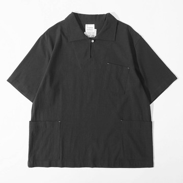 港風痞帥半開領套頭工裝短袖日系復古CityBoy寬松純棉休閑襯衫衣