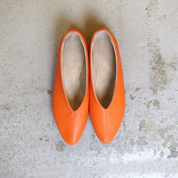 充滿活力的橘色繫帶有維他命色彩的瑪莉珍鞋。鮮豔的色彩,足以成為您穿搭的焦點,與丹寧褲更是絕配◎採用帶有自然紋理的皮革,讓您盡情享受皮革豐富的質感!無論是赤腳穿著,或是搭配絲襪等各式襪款都非常適合。V字領口設計能修飾腳踝線條,讓您輕鬆搭配各種下身單品。後跟加深設計,不易鬆脫!採用日本國產皮革,品質安心有保障。希望您能享受平常較少機會穿著的皮革鞋款所帶來的舒適腳感。・鞋楦看起來雖然偏窄,但實際穿著卻意外地寬鬆,舒適度令人驚豔!・採用不易引起拇趾外翻疼痛的製作方式與材質。・不易變形,並能有效拉長腿部比例!・長時間穿著也不易感到疲勞。(員工實際體驗證明)外底採用橡膠鞋底,具有良好的彎曲性,穿起來非常舒適好走。這是一款用途廣泛的百搭瑪莉珍鞋,我們希望讓更多人能穿到它,因此從生產到銷售一手包辦,在堅持使用高品質素材的同時,也能以這個價格提供給您^_^※鞋面及內裡皆為真皮製作。由於皮革的特性,每一片皮革的紋理和厚度都可能不同,縫製過程中可能會有些許內裡外露的情況,但這完全不影響使用。敬請理解。※皮革在製造過程中經過染色處理。遇水時可能會產生褪色,穿著襪子時請多加留意。▽注意事項 本商品為完全預約生產,訂購後將手工製作。 ※預計訂購後 10 天左右出貨。 恕不接受退貨,敬請見諒。 可接受換貨,但請務必在製作前與我們聯繫討論。鞋跟約 1cm▽顏色:橘色 (帶有自然紋理的皮革)▽材質 鞋面:真皮 (日本國產) 內裡:豬皮▽尺寸 22.5cm~26cm (以 0.5cm 為單位) 亦備有大尺碼。※購買時請在備註欄填寫您所需的尺寸。