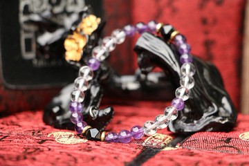 TIBUKKYO台灣德榕藏品|原礦無染色紫水晶手鍊 6mm配飾:原礦無染色白水晶|多切面黑曜石隔珠◎台北市歡迎面交自取,來信客製化搭配,可以直接寄送港澳/新馬◎白水晶又稱「摩尼寶珠」,是佛教七寶之一。白水晶晶體通透,略帶棉絮冰裂,白水晶的分佈相較其他水晶,分布最廣泛,被譽為「水晶之王」。◎紫水晶(Amethyst) 是一種紫色的靈性水晶,五行學說裡紫水晶被認為五行屬火,可以「因貴招財」。許多人也會在家裡擺放紫晶洞招財,主「智慧」與「財富」。天然紫水晶因含有鐵、錳等礦物質而形成亮麗的紫色,主要分為淡紫、紫紅、深紅、大紅、深紫等顏色,以深紫跟大紅為佳品。天然紫晶通常會含有冰裂紋以及白色雲霧質。是極具極具寶石價值的佳品。