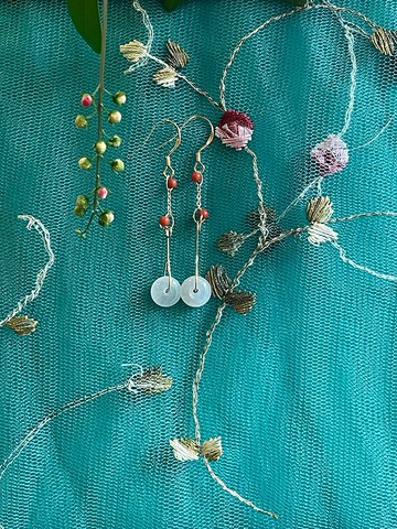 緬甸玉耳環 II 白翡圓珠X緬甸玉黃翡珠X南紅珠 I 緬甸A貨翡翠耳環