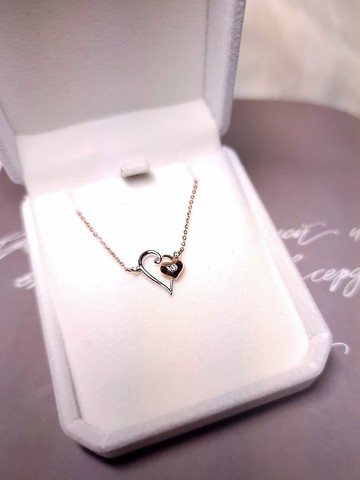 女用項鍊 鑽石14K金白鋼--心捧心 送禮推薦