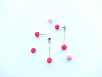 它是鮮紅色的。耳針的掛鉤上附有鏈條,更換掛鉤即可享受兩種不同的設計。耳夾掛在金屬配件螺絲部分的鏈條上。您可以通過取下鏈條享受 2 種不同的設計。您可以將它與您現有的耳針耳夾搭配使用。它非常輕,您甚至感覺不到自己戴著它。每一粒都是用細如手縫線的蕾絲線精心編織而成。材料圖案:棉花邊線金屬配件: 耳針鈦柱,鈦搭扣,矽搭扣耳夾電鍍尺寸 全長約4cm(一粒直徑約1.2mm)