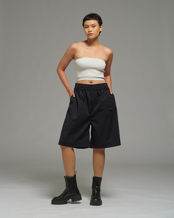 特色- 聚酯纖維混紡材質- 鬆緊褲頭搭配內抽繩- 寬版褲袢設計- 實用側口袋- 後雙滾邊口袋- 落襠設計,提供寬鬆舒適的著感- 內裡滾邊縫線處理- 標籤處有 ANA ABU 品牌標誌性的 Placid Blue 加固縫線,呼應品牌識別 材質:聚酯纖維混紡顏色:細條紋灰、細條紋海軍藍、黑色穿搭建議- 搭配短版棉質襯衫與平底涼鞋,打造俐落又隨性的風格。- 搭配同款細條紋的 Asymmetrical Blazer 西裝外套,內搭中性色系的坦克背心或 T 恤,將短褲提升為一套精緻的套裝。 *上衣與下身單品分開販售,非成套組合。圖片僅供穿搭參考。**產品顏色可能因攝影燈光或您的螢幕設定而略有差異。洗滌說明- 請以冷水搭配護色洗劑,溫和機洗。- 深色與彩色衣物請與白色或淺色衣物分開洗滌,以免染料轉移。- 請勿漂白。- 避免烘乾;請自然風乾,置於陽光下晾乾。- 請反面以中溫熨燙。- 請使用洗衣網袋,以避免布料損壞。尺寸參考身高 170 公分、體重 50 公斤的模特兒 Aliya 穿著 XS/S 尺寸運送資訊- 我們提供全球運送服務。- 運送服務時間為週一至週五(不含國定假日)。週一至週五上午 9:00 前(不含假日)的訂單將於當日寄出。上午 9:00 後或假日訂單將於次個工作日寄出。- 請注意,於節慶季節、新品搶先發售期間,或包裹因海關清關延誤,運送時間可能會拉長。- 國際訂單可能需支付目的地國家所課徵的進口稅、關稅與相關費用。收件人須自行負擔海關清關的額外費用。退換貨政策- 除特價商品外,所有商品自收件日起 14 天內均可辦理退換貨。- 若要符合換貨資格,您的商品必須未使用且與您收到時的狀態相同。商品亦須保留原包裝,且內部標籤必須完整。- 若商品於洗滌或使用後出現瑕疵,恕不接受退貨。