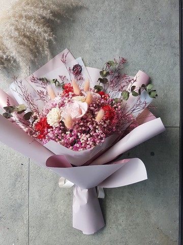 海藏設計│畢業花束。薄霧粉(大型)/情人節花束/乾燥花束