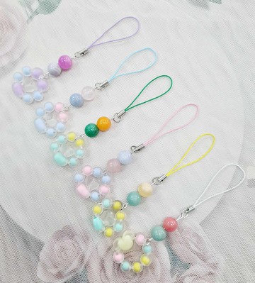 女款ins風手工串珠小清新珍珠彩虹歐美風同款合金手機鏈創意短款防摔手腕帶手提手拎短款手腕繩圓珠子掛繩