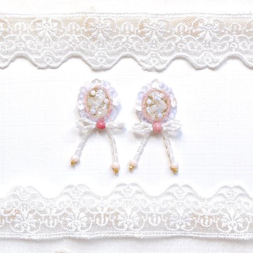 將夜空中那抹朦朧的雲朵封存其中,再以絲帶與亮片點綴。每一個耳飾都擁有獨一無二的表情。可選擇耳針或耳夾。《尺寸》約2.2×5.1cm《材質》珠飾(玻璃)、樹脂、真皮(豬麂皮)等耳夾五金:黃銅+電鍍耳針五金:不鏽鋼+電鍍 耳針托:黃銅+電鍍