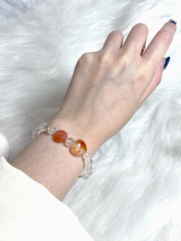 橙紅石榴石 紅紋石 草莓晶 月光石 14k包金 天然水晶手鍊