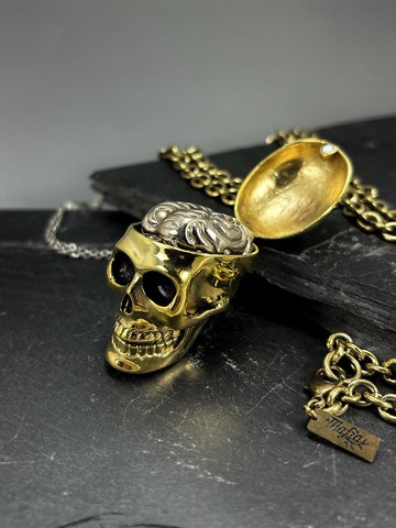 黃銅骷髏與腦部吊飾項鍊。共 4 種顏色可供選擇。