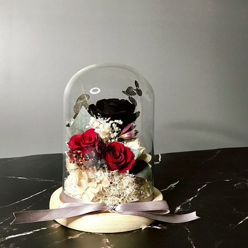 ⚠️注意事項⚠️1.此款商品使用日本進口永生玫瑰,使用乾燥花及永生花做搭配,若欲花材缺貨,花藝師會用其他合適的花材取代。2. 商品出貨可加購窗框提袋,送禮不擔心~~3. 每件商品均附永生花介紹及保存說明小卡4. 此為訂製商品,請與設計師聊聊想要的配色~~🌷照片商品🌷規格~ 永生花玫瑰玻璃鍾罩風格~ 復古暗黑系尺寸~ 鐘罩直徑10公分,高度15公分🌷什麼是永生花🌷永生花經過特殊的處理將新鮮真花 - 脫水 - 染色 - 乾燥等顏色質感與鮮花非常相似保有鮮花的艷麗,卻比鮮花還能長期保存🌷永生花的保存方式🌷🌕請勿澆水或經常性觸摸喔!🌕避免陽光的直射,會導致美麗的顏色褪色!🌕永生花很怕濕!若是太潮濕花瓣會呈現透明更慘會長黴菌!必要的時候請除濕~🌕台灣落塵量大~如果花禮上有灰塵附著,可以使用軟毛刷輕輕刷或是吹風機冷風輕吹,請以對待自己吹彈可破的肌膚般對待永生花🌕若是開冷氣或除濕,請不要冷風直吹喔!吹太乾會導致花瓣破碎~小編我就是發生過這種慘案!🌕最好的保存環境是在濕度40-70% 溫度4-30度,若是保存良好永生玫瑰花可以維持保守2-3年以上~