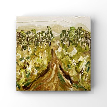 鄉村道路油畫印象派草地樹林藝術抽象風景