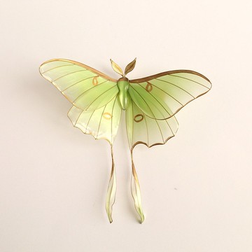 髮夾綠月蛾裝飾由金色金屬絲和環氧樹脂製成。 因此,它們非常耐用。 蝴蝶是有光澤和半透明的,所以它在陽光下閃閃發光非常漂亮。 鱷魚夾扣開合。所有細節都是手工製作的,產品的精確重複是不可能的。蝴蝶長 11 厘米,寬 11 厘米