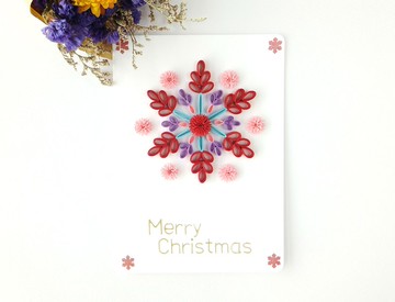 手作捲紙卡片-雪之戀 雪花聖誕卡 紅