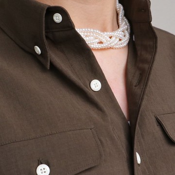 原生棉質 褶皺肌理感盤扣設計長袖襯衫 SH220510