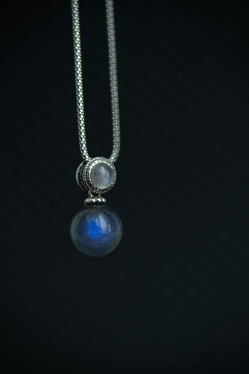 強光拉長石 項鏈S925銀鑲嵌拉長石,深灰底色,藍色光暈。拉長石又稱光譜石,因它可以因轉動發出七彩的光暈而出名。愛斯基摩人有個關於拉長石的傳說,傳說北極光被海妖發現,將其封印在石頭裡,後來被戰士發現敲碎石頭釋放出來,但殘留了部分北極光在石頭裡,為了報答贈送了這個含有北極光力量的石頭給了戰士,也就是拉長石。拉長石|Labradorite相關星座:獅子座、天蠍座、射手座對應頂輪提升敏銳度、智力、敏感、直覺、創意、科學分析穩定氣場緩解不安全感、焦慮、壓力拉長石圓珠:10.7 mm 吊墜長度:20 mmS925銀鑲嵌項鏈長度:40 、45 cm 兩個環可扣購買須知天然礦石存在冰裂、棉絮、黑點、礦坑等屬正常現象,不屬瑕疵品。所有飾物真實拍攝,照片會因光線、角度、顯示器不同,而出現輕微色差。產品寄出前均會作淨化處理。