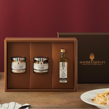 **伯爵松露禮盒 (附高質感品牌紙袋)**The Elegant Truffle Gift Box▧ 稀有白松露老饕最愛▧ 義大利百年松露領導品牌▧ 每顆松露都是經松露獵人嚴格挑選▧ 內裝產品皆為義大利原裝進口▧ 不含防腐劑與人工添加物▧ 高質感禮盒包裝▧ 企業贈禮、年節送禮、結婚禮物▧ 不需要會下廚,零廚藝也能吃上松露的美味https://hocom.tw/Uploads/userfiles/images/xxrgwhayzv7ep11.jpghttps://hocom.tw/Uploads/userfiles/images/6txx7chu674xbwc.jpg白松露帶有的淡淡奶油與大蒜味,溫和優雅的香氣,讓貴族們深深著迷。由於白松露產量十分稀有與昂貴,通常是皇室貴族才有辦法品嚐到的逸品。為了保存這些珍貴的白松露,御廚們會將新鮮白松露製作成各式白松露製品,讓皇室貴族們能夠在非產季也能用上白松露來宴請遠道而來的貴賓。貴族莊園松露獵人出身的薩維尼,讓大眾也能品嘗到原本只屬於貴族才能享受到的味道。收錄用春季白松露製作而成的__畢昂切多白松露醬__與使用正白松露的__琥珀白松露橄欖油__再加上一款經典義大利風味的__帕米加諾起司松露醬__,此款高雅內斂的**伯爵松露禮盒**,肯定能讓收禮人尤其女性,體會到你不凡的品味與獨到的眼光。**|禮盒內含|****∥ 畢昂切多白松露醬 90g** /https://www.pinkoi.com/product/DUEd45PE畢昂切多白松露(Tuber albidum Pico)產季主要在2、3月間,所以又稱三月松露或春季白松露,帶有淡淡的香蒜味與些許辛辣味,產量比夏季黑松露更為稀有,價格上當然就昂貴不少,所以也是深受老饕喜愛的松露品種之一。現採的新鮮畢昂切多白松露添加鳳尾魚提味,鳳尾魚本身的鮮味與鹹味讓有著濃郁風味的畢昂切多白松露味道更為突出,適用於各式料理,創造出一種豐富的味覺饗宴。**∥ 帕米加諾起司松露醬 90g** /https://www.pinkoi.com/product/Jvq8s7ew經嚴格PDO(Protected Designation of Origin)原產地認證的帕米加諾起司P.D.O. 以絕佳的比例與夏季黑松露調配成這款帕米加諾起司松露醬,帕米加諾起司的濃郁奶香與堅果風味、夏季黑松露深邃且獨特的香氣,兩款具代表義大利美食經典元素的結合,無論是作為義大利麵或披薩的美味底醬,還是搭配肉類和海鮮,都能為菜餚帶來極致的美味,這也是義大利人對料理講究、永不退讓的精神。**∥ 琥珀白松露橄欖油 55ml (含白松露浸漬)** /https://www.pinkoi.com/product/WjLPWVdW橄欖油可以說是與松露最搭的油品,彼此不會互相搶味,反而是可以相互襯托,橄欖油的果香與青草味,恰巧與白松露(TUBER MAGNATUM)帶有的奶油與大蒜味結合,彷彿在田園大地裡的那般清新自然。各自帶有的風味很適合加在沙拉、濃湯、義大利麵、燉飯、牛排上,甚至是作成Pizza,可以說是非常萬用的調味品,簡簡單單就能讓料理提升一個層次。https://hocom.tw/Uploads/userfiles/images/hgt3czxcbah8w9q.jpg**伯爵松露禮盒**成分|__畢昂切多白松露醬__:蘑菇(雙孢蘑菇)、橄欖油、橄欖、畢昂切多白松露(Tuber albidum Pico)3%、續隨子、鳳尾魚、松露香料、葵花籽油、香料植物(大蒜、歐芹)、天然香料、鹽、香辛料(胡椒)。__帕米加諾起司松露醬__:乳脂、帕米加諾起司 P.D.O. (受保護的原產地標記)14%、橄欖油、夏季黑松露(TUBER AESTIVUM VITT.)3%、米粉、鹽、松露香料。__琥珀白松露橄欖油__:橄欖油、松露香料、乾白松露(TUBER MAGNATUM)0.1%。產地|義大利禮盒尺寸|21x 19.8x 7cm**薩維尼松露Savini Tartufi**https://hocom.tw/Uploads/userfiles/images/a5v1ssj1a3pbjxi.jpg__薩維尼(SAVINI)__-義大利托斯卡尼百年松露家族,四代松露獵人傳承,長年累月發掘新鮮松露的經驗與專業製作松露產品的技術,提供高品質松露產品給全世界頂級消費市場,如米其林餐廳、五星級飯店與白松露拍賣會,因此在競爭無比的松露界享譽盛名。從1920年創辦以來,薩維尼松露(Savini Tartufi)始終秉守尊重大自然、愛惜森林,守護托斯卡尼這一片眷顧他們家族的土地,以永續發展的理念挖採松露,至今依舊維持古老時代所傳承下來,由松露獵人帶著受過專業訓練的松露獵犬,以人工挖採的方式獲取松露,目的在維持松露的完整性與森林不被破壞,這樣的理念深深受到日益重視環保意識影響的消費者所肯定。今天,薩維尼松露是一家現代化的公司,其生產、包裝、運輸、儲存等都符合國際衛生食品安全標準,取得IFS、BRC等國際認證,是義大利製造的卓越代表,並秉持著其古老價值,堅定地展望未來。 __世界最貴白松露金氏紀錄__,2007年同時於澳門、倫敦和佛羅倫薩的拍賣會上,出現了一顆驚艷四方,讓在場競標者嘆為觀止的巨大白松露,這顆白松露就是由薩維尼松露(Savini Tartufi)所提供。2007年11月23日,家族中的克里斯蒂亞諾·薩維尼(Cristiano Savini)和他的狗羅科 (Rocco) ,在地下2.5英尺處發現這顆重約1.3 公斤(2 磅13 盎司)的巨大白松露,並花費了將近兩個小時才把它給完整挖出,挖出後馬上上飛機直送澳門拍賣會,最終由世界知名的澳門賭王何鴻燊以 33 萬美元的價格標得。而薩維尼松露把這筆款項捐給了義大利的慈善機構。