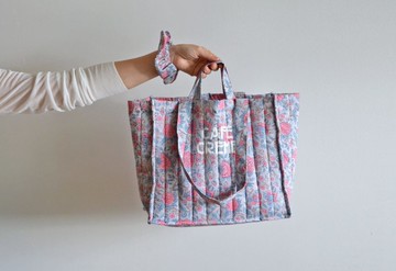 「如同黎明般淡藍灰色調中,盛開的玫瑰花園,令人心動不已」隆重介紹 Somei et Miai 包款系列中的全新單品——絎縫托特包!首波推出採用 100% 純棉的積層印花材質製作。所謂積層印花,是工匠們將染料塗抹在手工雕刻的木版上,再像蓋印章一樣印在布料上,是一種流傳於印度數百年的傳統染色技術。其特色在於機械無法複製的獨特質感與溫柔觸感,即使是相同的設計,每一個作品也都有細微差異,極具魅力。溫暖的圖案與純棉特有的蓬鬆柔軟質感,帶來令人忍不住想一直觸摸的舒適感。我們將令人著迷的積層印花與絎縫工藝結合,希望能製作出一款能為您的日常生活增添輕盈、舒適與色彩的包款。我們首次在巴黎的咖啡館體驗的「café crème」標誌性塗鴉,也是這款包的一大亮點喔!此外,「容量充足」的實用尺寸也令人愛不釋手!午餐盒、水壺、雨傘、化妝包、錢包… 能將日常所需物品整齊收納的「剛剛好的尺寸感」。充足的收納空間帶來滿滿的安全感。附有提把和肩背帶,方便攜帶。而且,這款托特包尺寸實用,卻只有 150g,非常輕巧!開口寬敞,能輕鬆隨意地放入所需物品,讓您隨時保持輕快。內側設有口袋,可快速收納手機、卡片、鑰匙等小物。無論是休閒還是日常使用,都能感受到這份舒適自在。絎縫的蓬鬆感也非常推薦作為媽媽包或禮物喔!凡訂購絎縫托特包的顧客,將獲贈 Somei et Miai 贈送的同款布料製成的髮圈一個,與托特包完美搭配。無論是綁在頭髮上,還是戴在手臂上,都能隨心所欲地享受時尚樂趣。色彩鮮豔奪目,細膩卻充滿溫暖與質樸感的手工積層印花。100% 純棉材質的絎縫托特包,適合全年使用。絕對能為使用者帶來快樂明亮的心情!■注意事項此商品圖案配置可能因個別商品而異。此外,遇水或摩擦可能導致褪色或染色。圖案部分因手工製作,可能會有色差、暈染或色點等個別差異。請理解這些手工製作的獨特之處。◾️材質處理說明染色商品可能會有褪色現象,請與其他衣物分開洗滌。請使用不含漂白劑或螢光增白劑的中性洗劑,避免使用烘乾機或滾筒式洗衣機。請使用洗衣機的弱速模式或輕柔手洗,並以常溫水或溫水洗滌。若沾有汗水或水分,請注意可能導致染色至其他物品。<尺寸>寬度:36cm高度:29cm厚度:14cm提把:22cm肩背帶:61cm內袋:13cm x 13cm重量:150g<材質>◼︎包身表面:100% 純棉◼︎包內填充物:100% 聚酯纖維~Somei et Miai 的貼心提醒~我們用心製作每一個商品,並珍惜您購買的這份心意,但由於是手工製作,您收到的商品在色澤、圖案位置、尺寸感上可能與網頁所示略有差異,敬請理解這是獨一無二的商品樂趣。