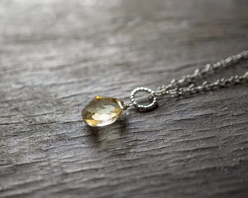 黃水晶淚珠項鍊,925銀,雙子石,水瓶座水晶,獅子座寶石