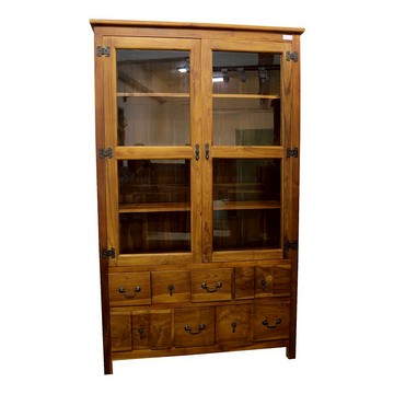 【吉迪市100%全柚木家具】RPSC031BA 柚木玻璃雙門三抽式展示書櫃