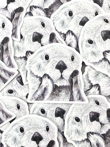 水彩插畫小動物 - 海獺 PVC防水貼紙 (霧面) 行李箱貼紙 電腦貼