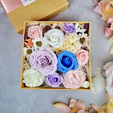 成品花盒尺寸:(15 x 15 x7)cm【材料】香皂玫瑰, 紙,紙盒【花禮】永生花, 乾花,香皂花:https://hk.pinkoi.com/store/silverbreeze?q=%E8%8A%B1%E7%A6%AE【店舖首頁】:https://hk.pinkoi.com/store/silverbreeze?category=5&subcategory=549【購物需知】⭐️人手製作,每件設計商品可説是獨一無異,成品跟提供樣版可能有些微不同,因為花材形態,季節性配花襯草可能因來貨批次或供應缺貨而需要微調,但整體外觀會跟樣板相差不多。如有疑問,下單前歡迎與我們聯絡及查詢後才下單。【郵遞需知】商品由香港寄:《香港》■香港郵政: 掛號郵件,寄件後約1-2個工作天收到。■順豐:約1~2個工作天《台灣》■香港郵政: 空郵掛號,標準派遞約為5~9個工作天。 🔔此商品台灣地區未能寄順豐【溫馨提示】 香皂花●香皂花是加上香皂製作的仿真花/人造花,有淡淡的皂香,此款香皂花只供裝飾,不能當一般香皂使用。● 請置於室內通風乾燥的地方,避免受潮,請勿擺放於被陽光照射的位置。● 隨著時間,香皂花會有點褪色屬自然現象。【注意事項Attention】因拍攝光線關係和顯示屏幕不同,照片顏色與本品可能有些微落差。產地/製造方式香港