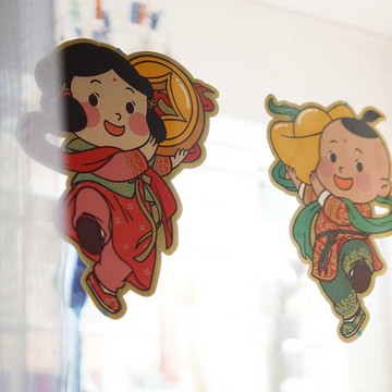 金童玉女 運財童子春聯雙面對裝門貼年畫