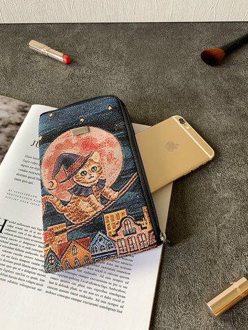 手機袋 收納 / 防潑水 平織緹花 魔女小星貓 艾咪