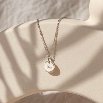 【客製化禮物】刻字純銀項鍊 | 經典小圓牌。專屬禮物。獨一無二