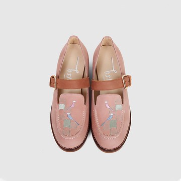 ▎**hsiu.夢想家Dreamer系列**無畏的青春,捧著天空給的無盡想像,義無反顧地朝夢想飛去,旅程中遇見相知相惜的彼此,順風飛翔享受過程,再次回到最初的起點。以鳥做一系列設計,像鳥兒在屋瓦上,乘著夢想,自由飛翔☁️我們成為夢想家的第一步要勇敢地想像未來心中嚮往飛翔以及未知的世界,預備出發吧!▎**hsiu story.屋瓦上**你是否也常常望向天空心想著自己 more than now你站在高處想像未來嚮往世界的無邊嚮往飛翔的自由不安現狀預備出發吧!▎**特色說明.木根綁帶瑪莉珍女鞋**__#柔美幽靜粉__鞋面採用經白蠟處理的牛皮,質感是霧面感粉色及棕色霧面感的迷人之處在於染製過後上一層白臘防護天然染製的色澤帶給妳溫柔細膩的風格皮革的霧面質感與細緻柔和的刺繡讓整體展現出嫻靜優雅氣息__#刺繡設計__以鳥兒站在屋瓦上的意象設計鳥兒以實心填色刺繡表現屋瓦以虛線刺繡展現兩種刺繡針法的美__#瑪莉珍鞋履__以瑪莉珍鞋履的樣態將背帶巧妙結合在率性木跟的鞋款上綁帶鬆緊可自由調整復古時尚設計歷久彌新__#個性木根__大底採用2.5cm的木頭跟經由手工鞋師傅精湛的手藝展現繡花手工鞋由內而外的質感和美麗!▎**材質說明**- 鞋面:質感白蠟牛皮- 中底:天然豚皮 (添加舒適乳膠墊)- 大底:止滑橡膠- 鞋跟:實木、止滑橡膠- 跟高:2.5 cm- 包裝:特製鞋盒、防塵袋▎**清潔保養**__#基本保養__- 擺放鞋的環境避免在潮濕以及容易直接照射到陽光的地方- 定期更換汗水髒污或穿著破損的乳膠鞋墊https://www.pinkoi.com/product/Ha2NCbpC__#皮面清潔__- 使用馬(豚)毛刷輕刷鞋面灰塵後,使用棉質布沾取少量專屬皮料(註*)保養劑擦拭在皮面上,上薄薄一層待保養劑吸收後,亦可使用專屬皮料奈米防水噴霧多一層防護層,切勿塗抹太多保養劑/防水噴霧避免傷害皮革- 若遇雨淋,須立即將皮面水漬使用棉質布擦乾並置於室內通風處陰乾,注意擦拭鞋面時避免用力拉扯鞋子,造成鞋子結構損壞。* 針對此雙鞋面皮革挑選合適的保養劑__#繡線清潔__- 首先以軟毛刷乾刷,刷去灰塵 - 再以軟毛刷沾少量清水或肥皂水,輕刷繡線,刷畢,用乾布擦乾https://live.staticflickr.com/65535/51389463946_ebc889c272_b.jpg▎**如何測量尺寸**建議您可以準備一張紙、一隻筆和一隻尺, 拿筆以垂直的方式描繪出腳的輪廓,所得到最寬與最長的兩端點,即是腳長與腳寬標準測量值。- 腳長:測量最長腳趾至腳後跟的距離- 腳寬:測量腳掌左右兩側最的寬距離若是偏寬的腳型,視實際狀況,增加一個尺碼。⁎ 因一般運動球鞋版型偏大,不建議參考球鞋尺碼喔⁎ 遇版型偏大款式,需挑小一尺碼▎**如遇到不確定尺寸或者尺寸缺號的問題,歡迎聯絡設計師洽詢**⁎ 若尺寸數量為0,可接受訂製請與設計師洽詢,製作時間須等30-45個工作天