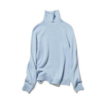 極致柔軟觸感 100%喀什米爾羊絨 高領針織衫 淺水藍 231109-6