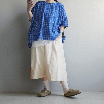 藍莓鬆餅格紋有機棉超寬版四方衣