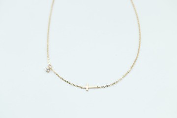 14K 橫十字架鎖骨項鍊