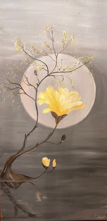 木蘭。花卉畫。3D 畫布上的油畫。交付時不帶框架。